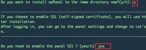 Do you want to install aaPanel to the /www directory now?(y/n): y