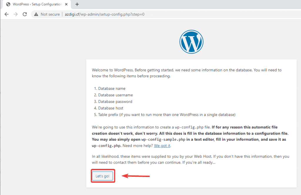Sau khi đã Download mã nguồn và tạo Database hoàn tất ở Bước 2, các bạn tiến hành truy cập website ở trình duyệt để hoàn tất các bước thiết lập tiếp theo.