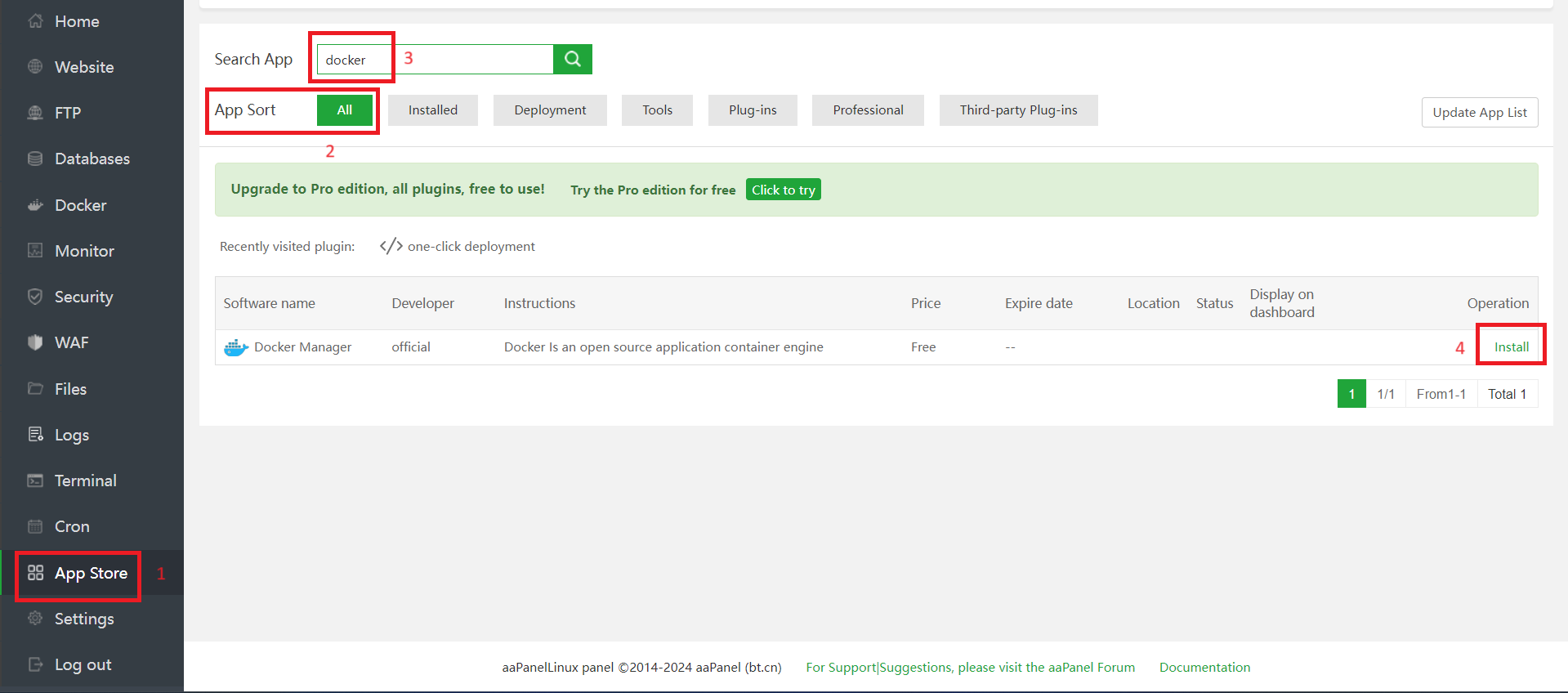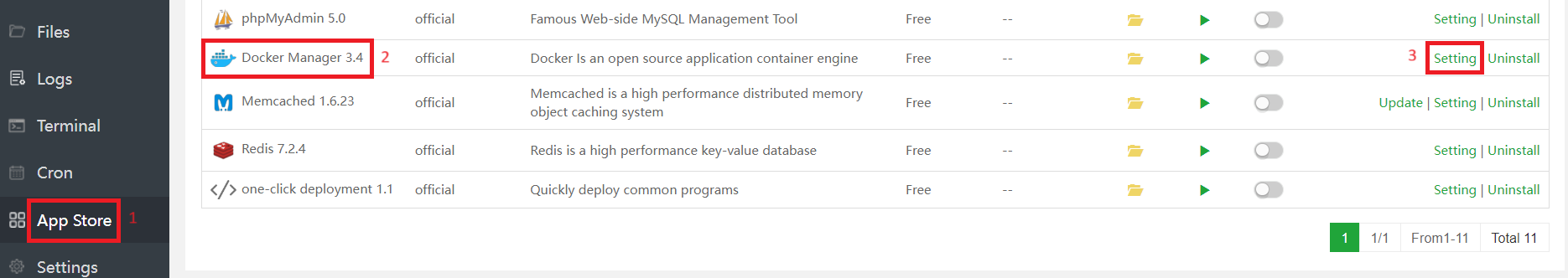 Trước khi đi vào bắt đầu bạn hãy cài Docker vào AAPanel từ thư viện Appstore mà không cần cài thủ công.