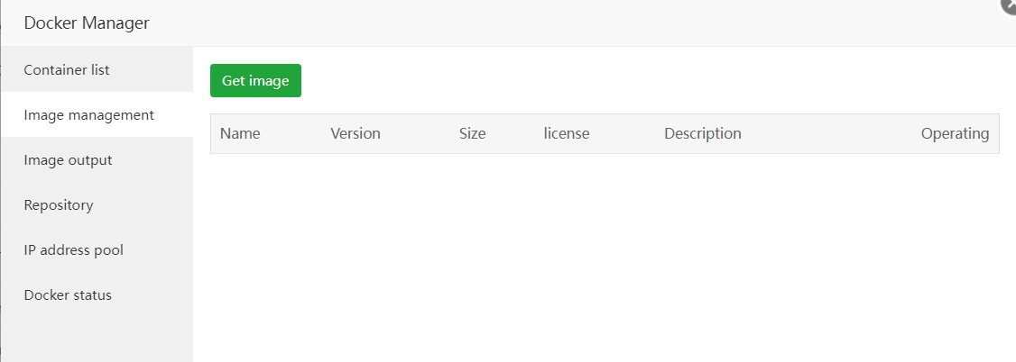 Bạn mở App Docker lên, di chuyển đến Image management => Get image