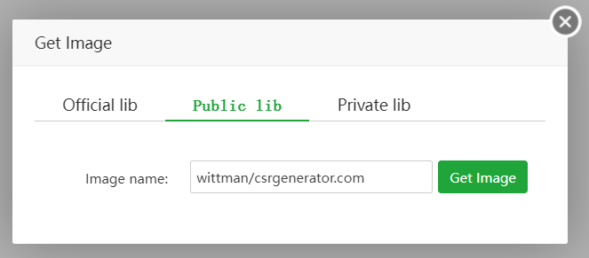 Sau đó chọn Public lib, ở mục Image name bạn dán tên image vào và chọn Get Image