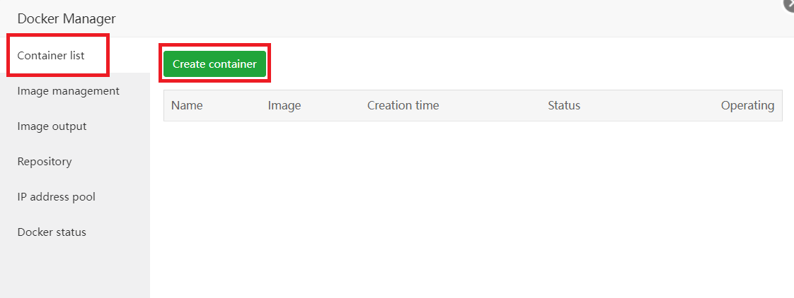 Vẫn trong giao diện Docker Manager, bạn chọn Container list => Create container