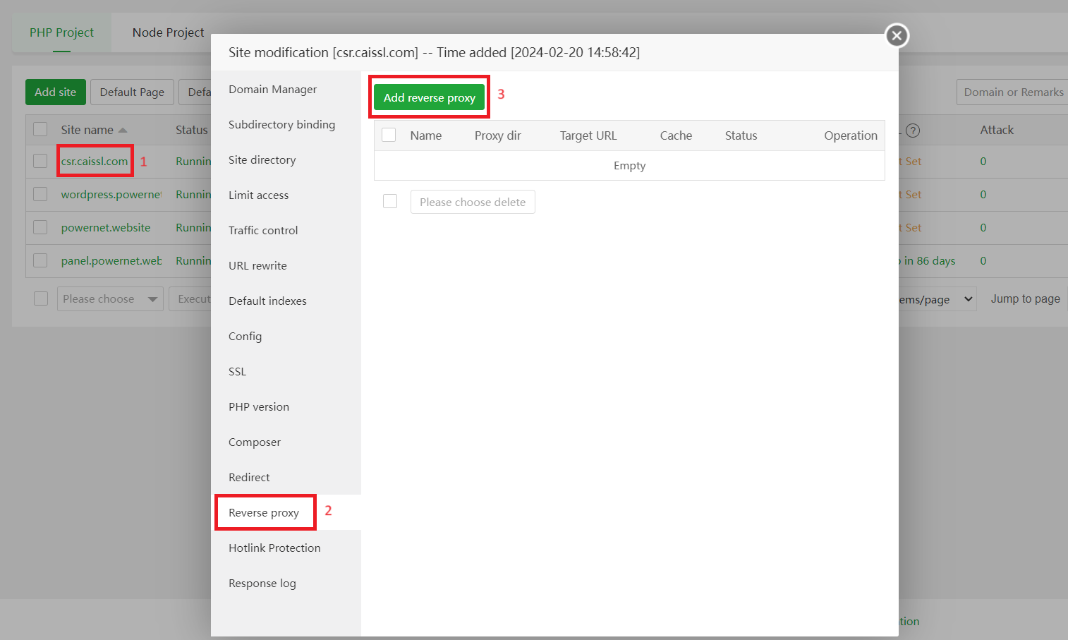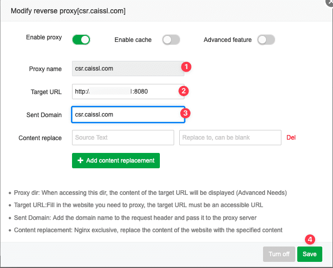 Tại trang Add reverse proxy bạn nhập vào các thông tin sau