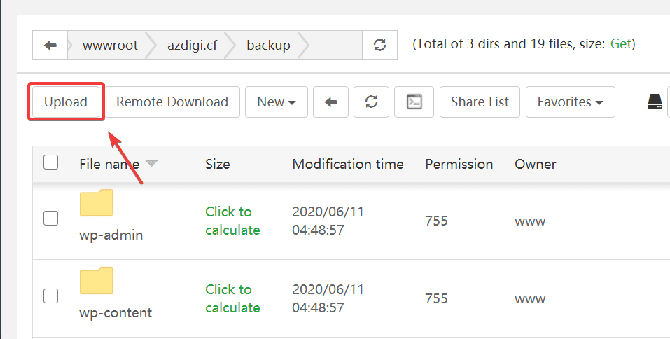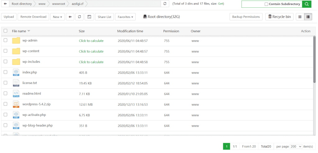 Bạn truy cập Website => chọn vào Root directory tương ứng với website cần thao tác.