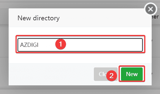 Tiếp theo bạn điền tên Folder (1) => New(2) để bắt đầu tạo.