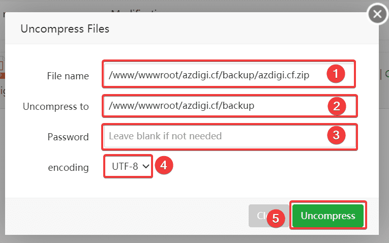 Tiếp đến tại phần Uncompress Files bạn thực hiện tiếp như sau: