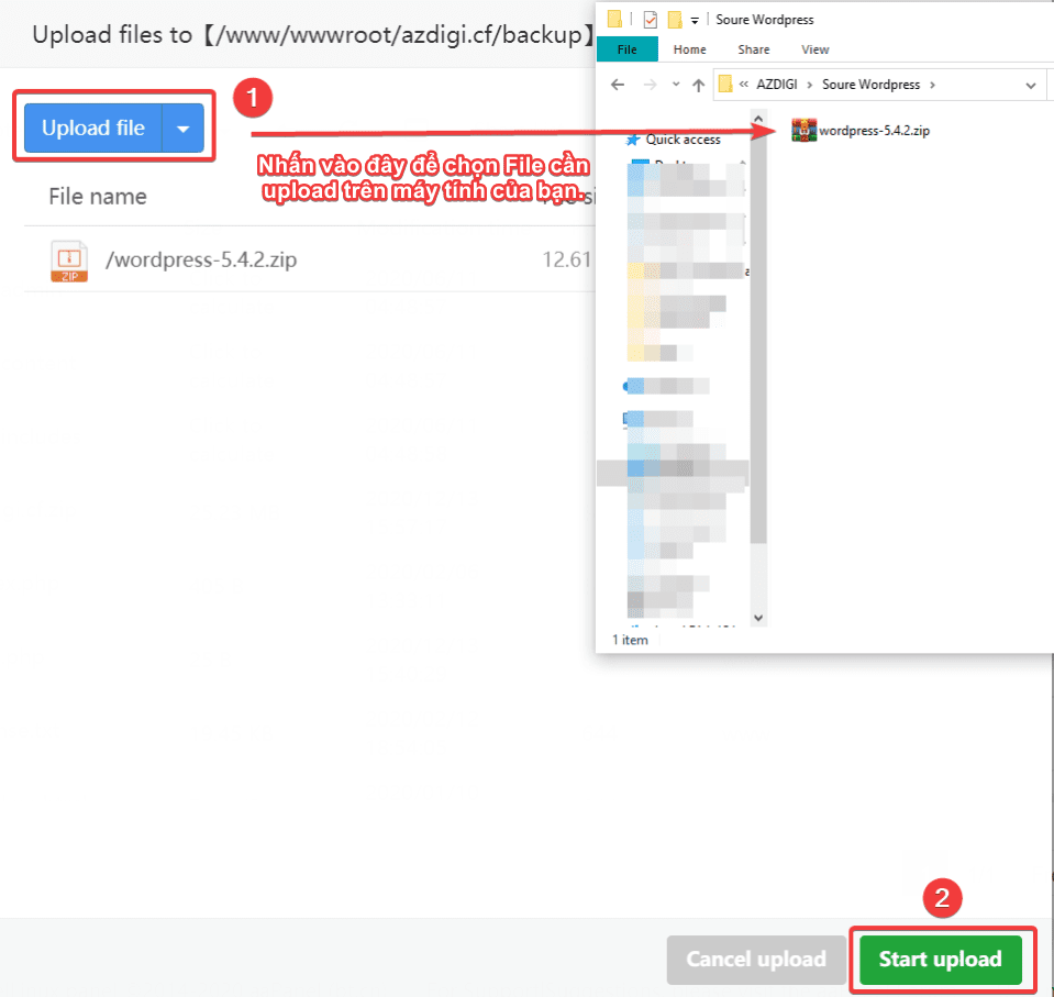Tiếp theo tại giao diện Upload, bạn thực hiện như hình. Trong đó: