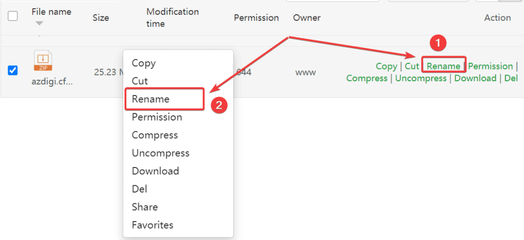 Để đổi tên File/ Folder trên aaPanel, các bạn có thể thực hiện theo 2 cách sau: