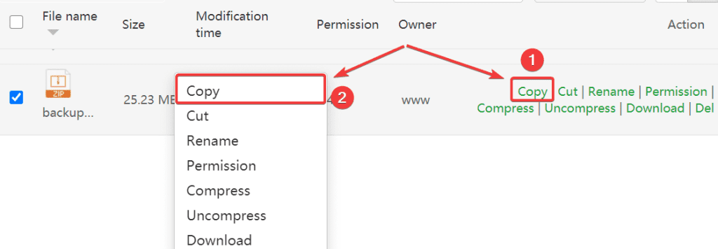Để Copy File/ Folder trên aaPanel, các bạn có thể thực hiện theo 2 cách sau: