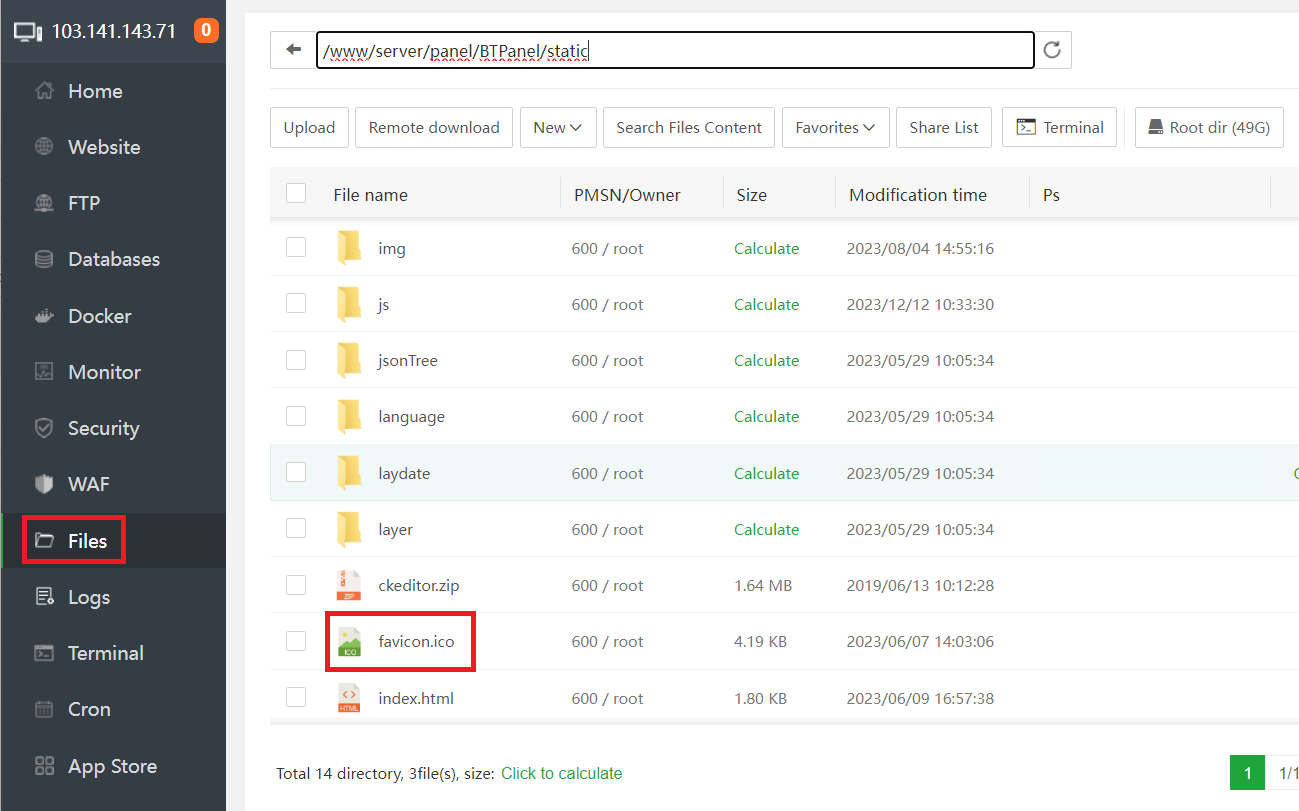 Sau khi file ảnh đã sẳn sàng bạn hãy truy cập vào File và và truy cập đến đường dẫn /www/server/panel/BTPanel/static