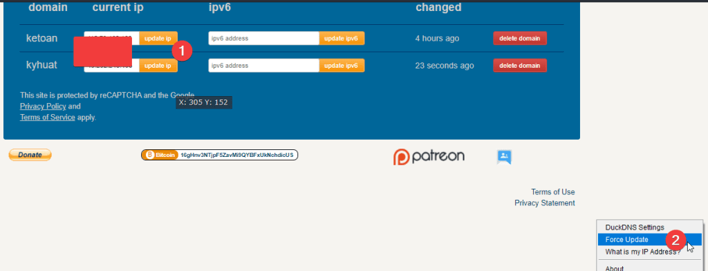 Sau khi chọn sub kyhuat.duckdns.org sẽ có thông tin gồm domain và and token