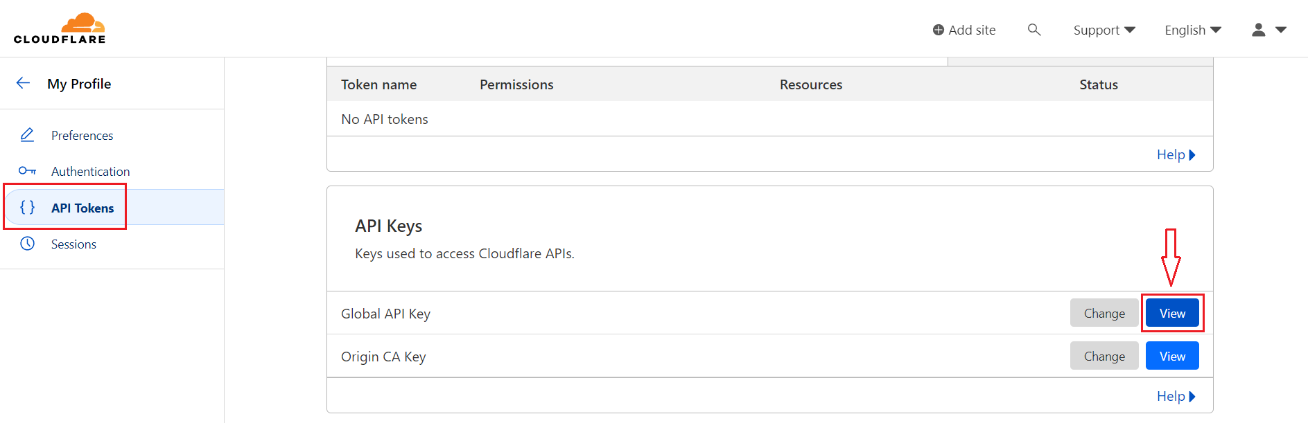 Bạn hãy truy cập vào CloudFlare và lấy mã Token.