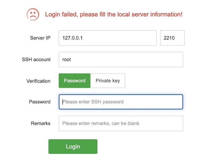 Trong quá trình hỗ trợ khách hàng. Mình có gặp qua một số trường hợp khách hàng sử dụng control aaPanel. Và gặp cảnh báo lỗi “Login failed please fill the local server information” khi vào Terminal. Cụ thể lỗi như ảnh đính kèm bên dưới